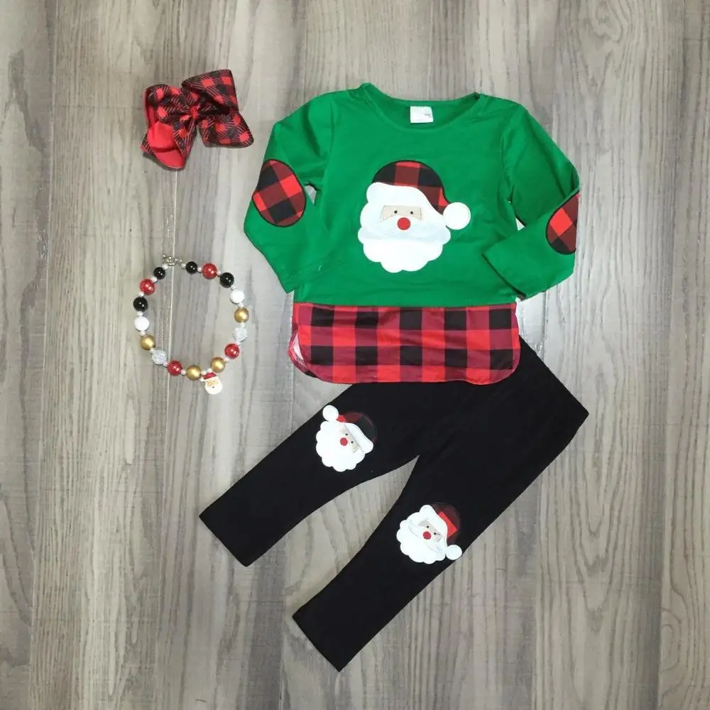 Product Name: Ropa de bebé niña, trajes de Navidad para niñas verde santa claus camisa con pantalón negro niñas trajes con accesorios