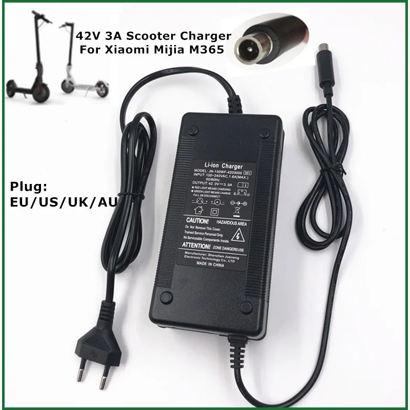 Product Name: 42V 3A adaptador de monopatín eléctrico cargador de Scooter para Xiaomi Mijia M365 accesorios de bicicleta eléctrica UE EE. UU. es enchufe de Reino Unido
