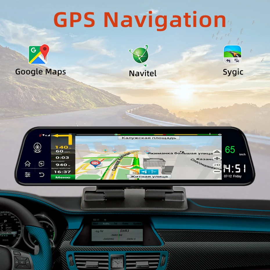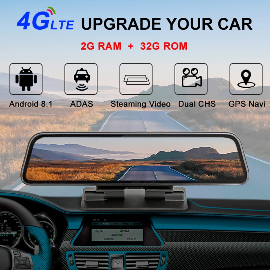Product Name: Bluavido 12 \"IPS espejo de coche DVR GPS 2G RAM 4G LTE Android 8,1 de la cámara grabadora de vídeo de navegación HD 1080P HD espejo retrovisor Dash Cam