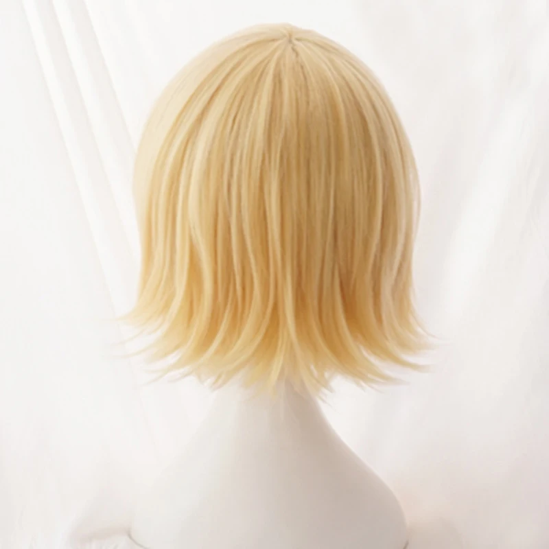 Product Name: Peluca de Cosplay de pelo rubio corto resistente al calor + pista + gorra de peluca