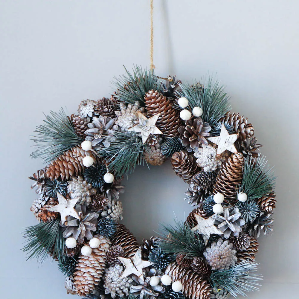 Special Offer Adornos navideños rústicos de invierno accesorios de decoración del hogar adornos navideños para el hogar guirnalda de nieve blanca con estrellas corona puerta Discount 25% Today!