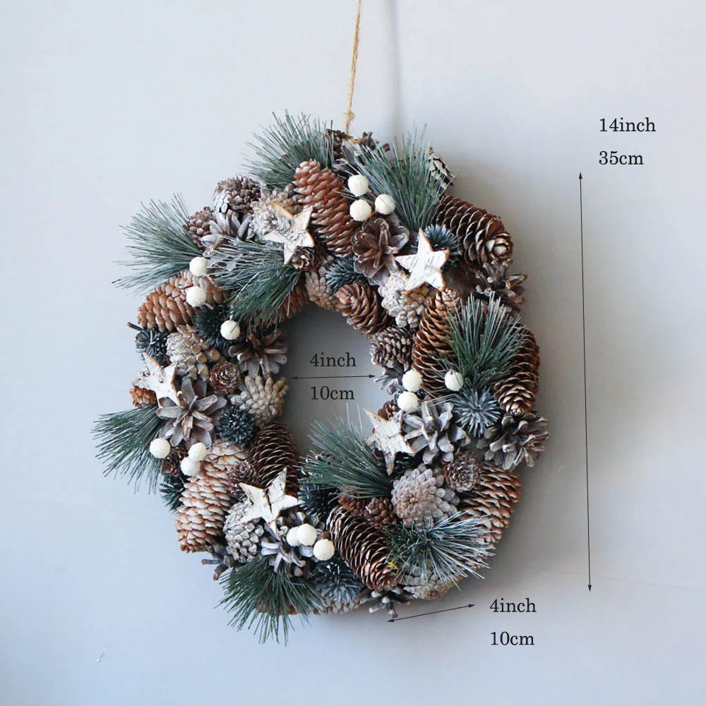 Product Name: Adornos navideños rústicos de invierno accesorios de decoración del hogar adornos navideños para el hogar guirnalda de nieve blanca con estrellas corona puerta