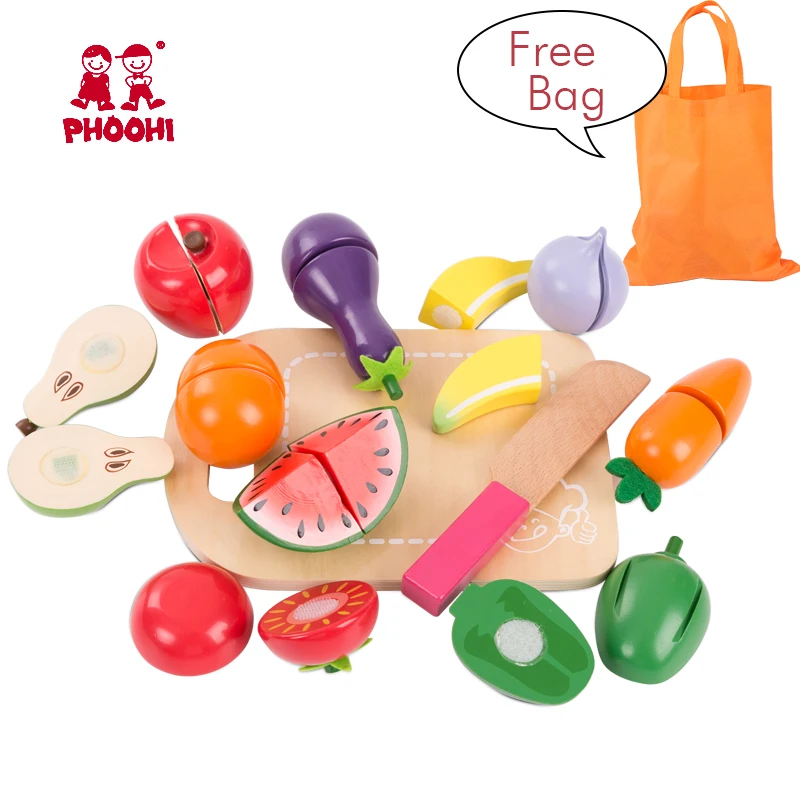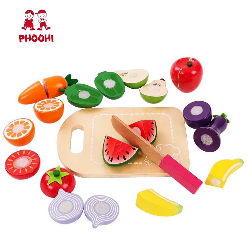 Product Name: Los niños cortan de madera frutas vegetales de juguete los niños fingen accesorios de cocina comida juego de juguete PHOOHI
