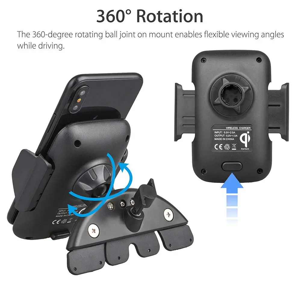 Product Name: Cargador inalámbrico de coche XMXCZKJ Qi para iPhone X 8 8 Plus soporte de ranura para CD soporte de teléfono para coche carga rápida para Samsung Note 8