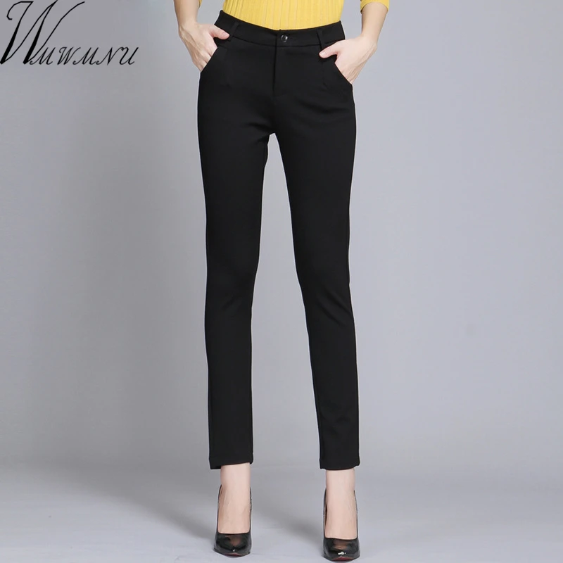 Special Offer Wmwmcu Pantalones de trabajo para Mujer Pantalones de lápiz de primavera negro casual de talla grande 4XL Pantalones delgados femeninos Pantalones elásticos Mujer Discount 49% Today!