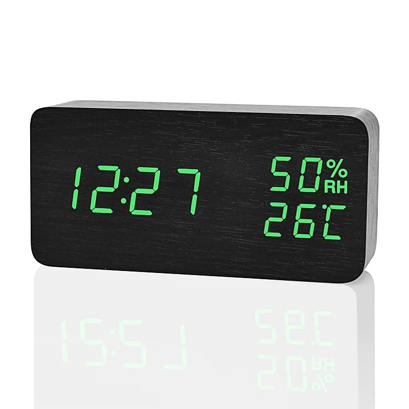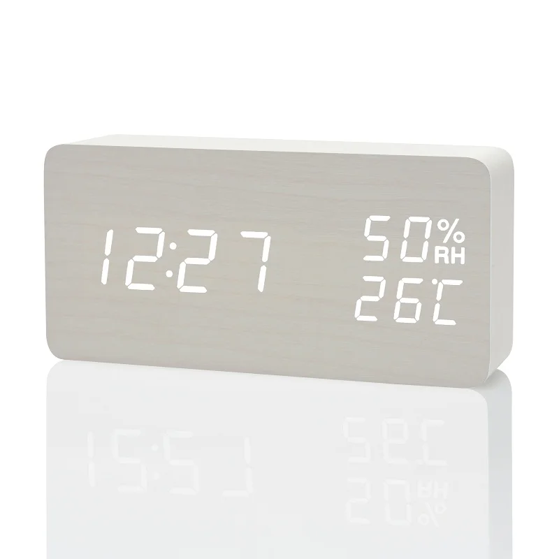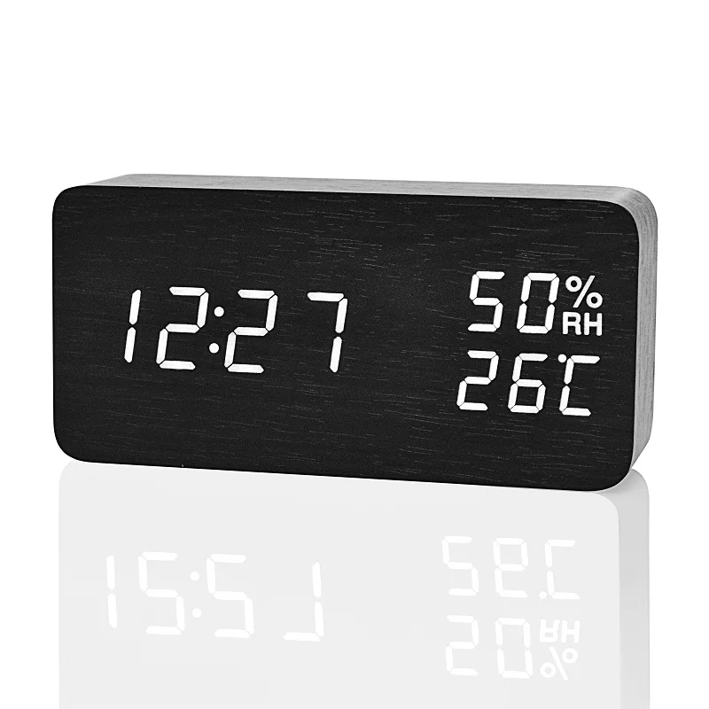 Product Name: FiBiSonic Moderno LED de Alarma Del Reloj, Despertador Electrónico De Temperatura Y Humedad Digital de Escritorio Relojes de Mesa