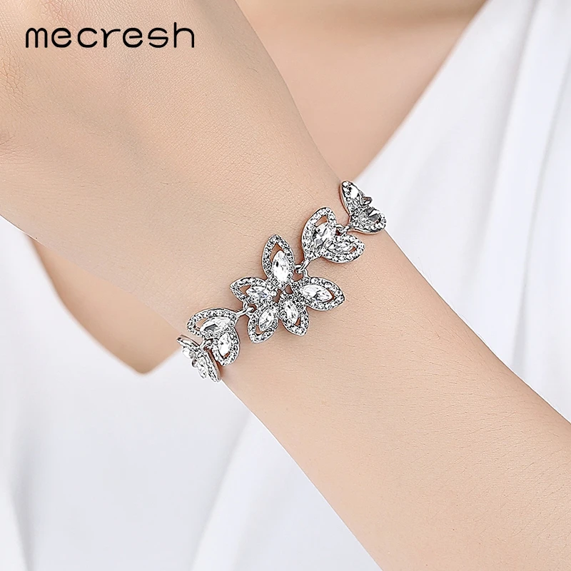 Special Offer Mecresh Noble joyería nupcial accesorios de boda conjuntos de joyas de Color plata cristal pendientes de hoja pulsera para mujer SL046 + EH282 Discount 39% Today!