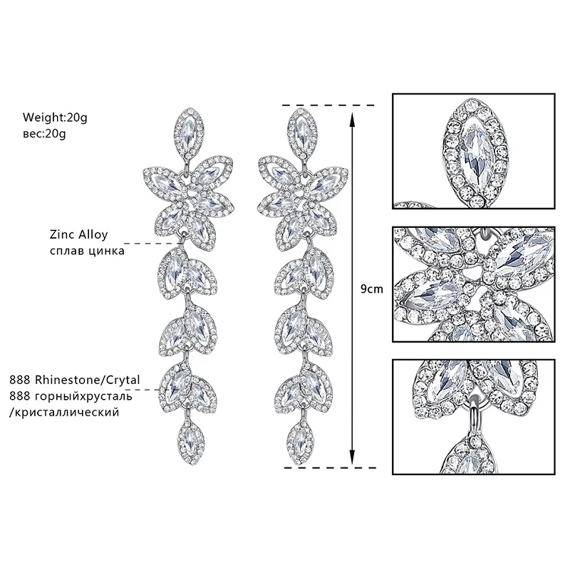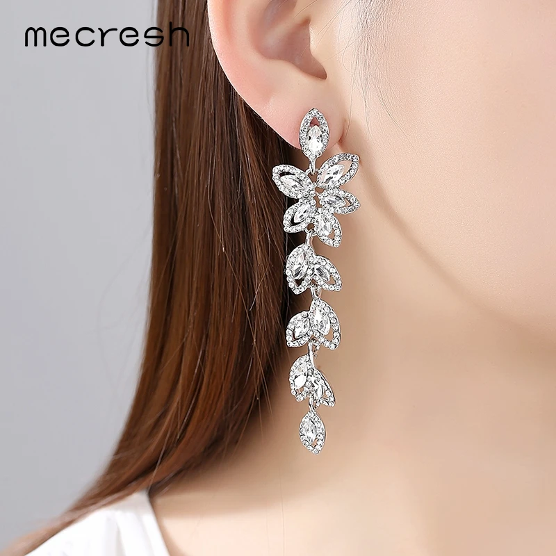 Product Name: Mecresh Noble joyería nupcial accesorios de boda conjuntos de joyas de Color plata cristal pendientes de hoja pulsera para mujer SL046 + EH282