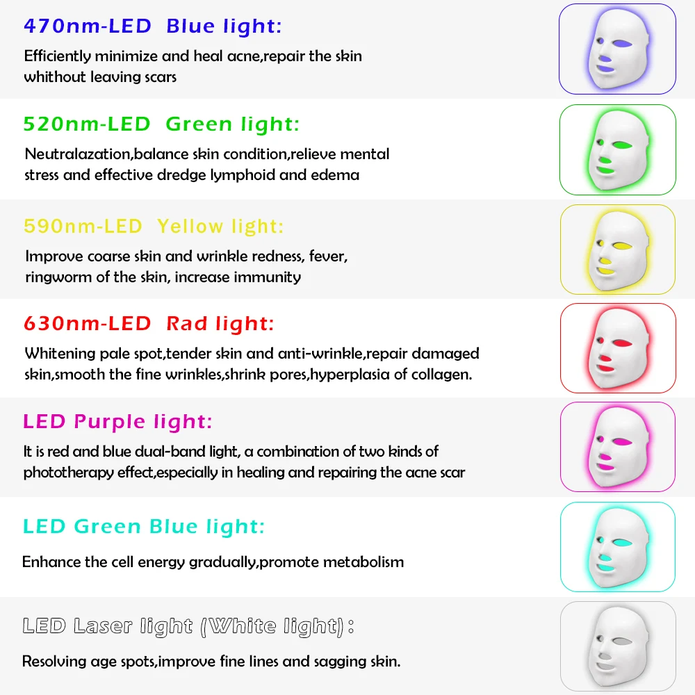 Product Name: 7 colores LED máscara Facial rejuvenecimiento de la piel antiarrugas acné terapia de fotones blanqueamiento instrumento de ajuste cuidado Facial máscara de piel