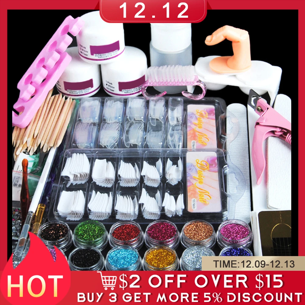 Special Offer Kit de Arte de uñas acrílicas juego de manicura 12 colores decoración en polvo brillante bolígrafo acrílico Kit de herramientas para manicura para principiantes Discount 50% Today!
