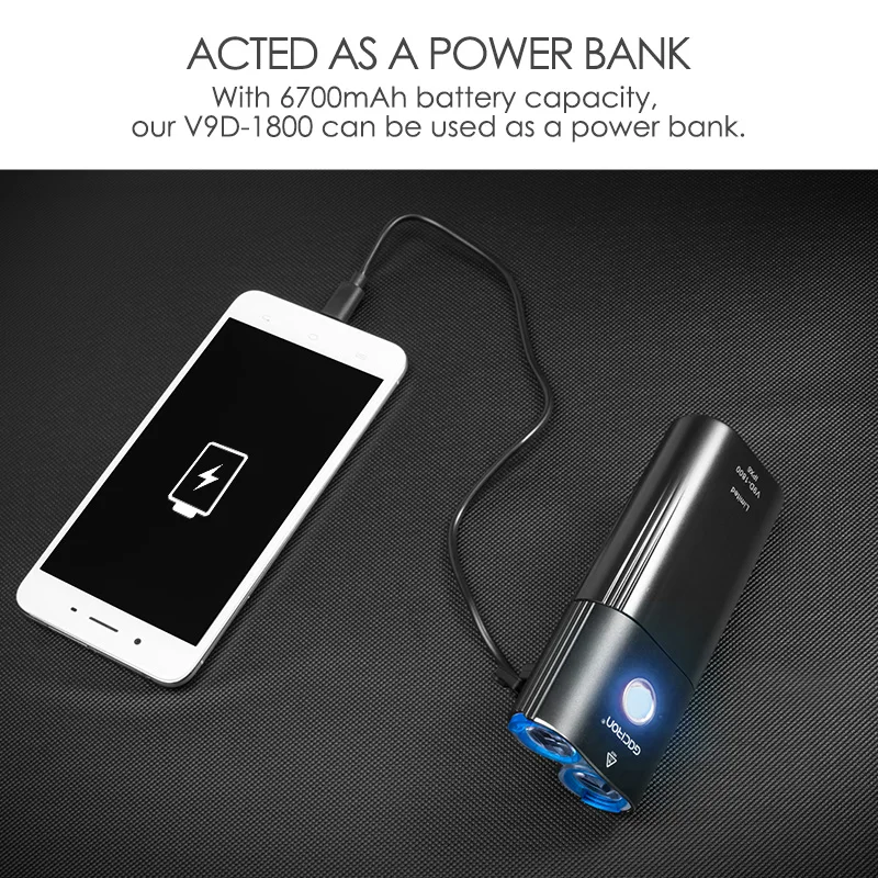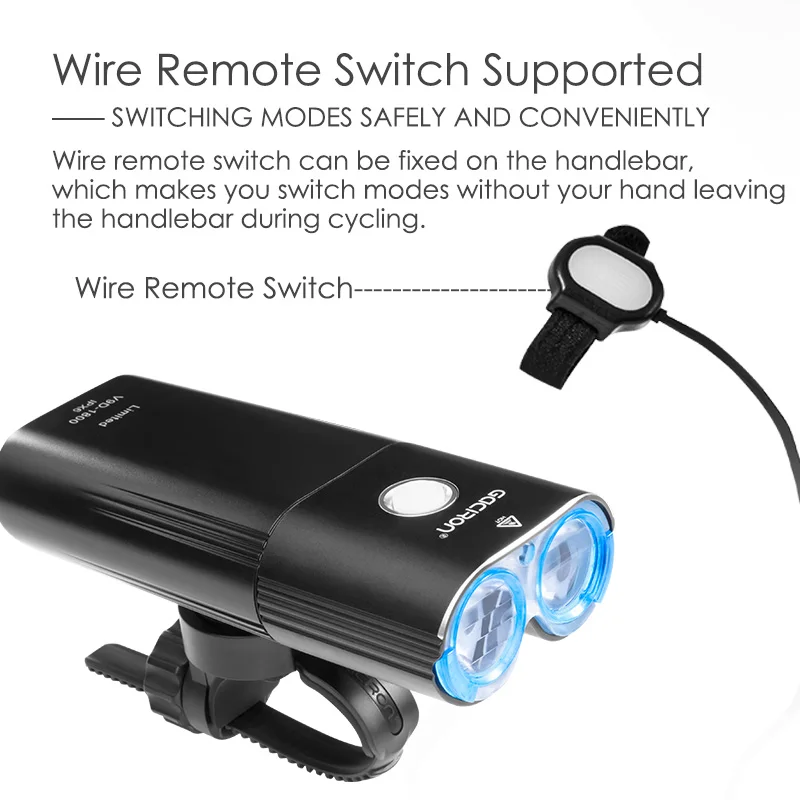 Product Name: GACIRON V9D 1800 faro delantero de 1800 lúmenes luz delantera de bicicleta impermeable USB recargable 6700mAh accesorios de luz de bicicleta