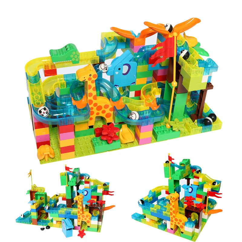 Special Offer 168 Uds., carrera de mármol, deslizamiento de ladrillos, laberinto, pista de bolas, bloques de construcción, montar, ciudad, juego de ladrillos, juguetes para niños, aventura en La Selva Discount 40% Today!