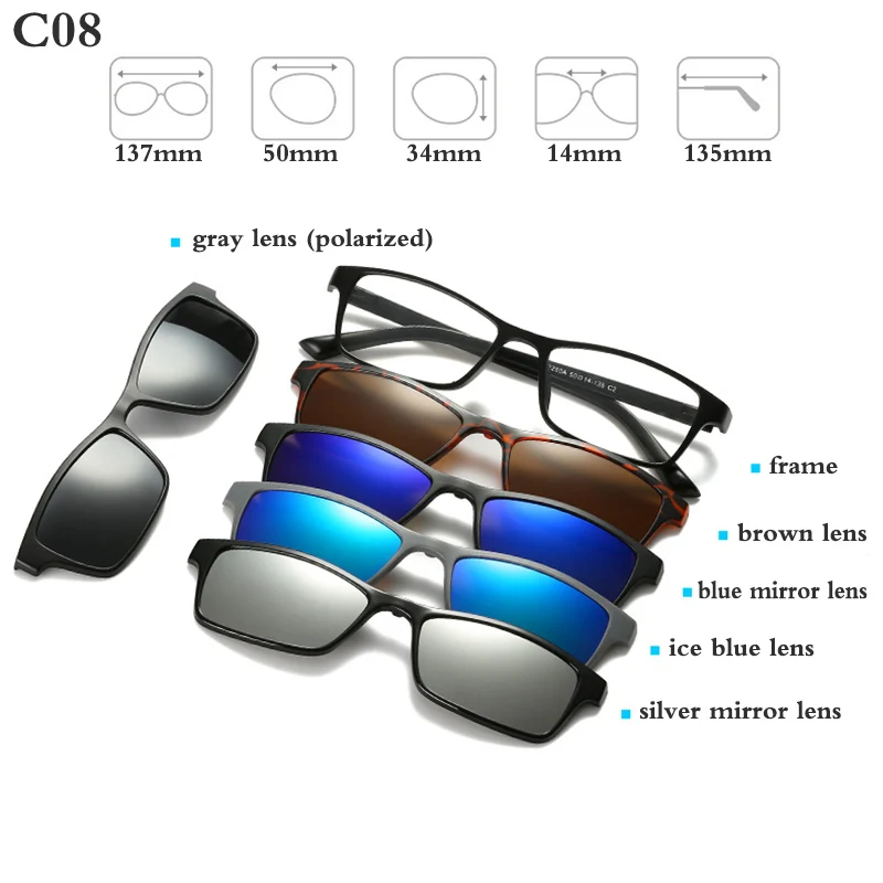 Product Name: Gafas de sol polarizadas magnéticas con 5 Clip para hombre y mujer con montura de gafas de moda para miopía RS159