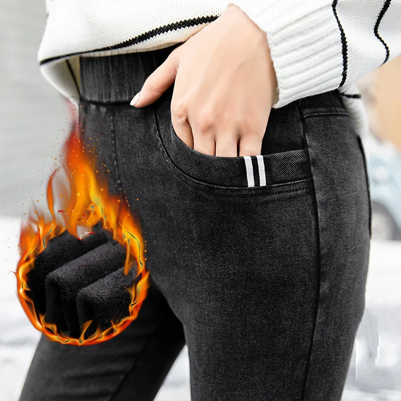 Special Offer Pantalones vaqueros de invierno elásticos de talla grande de terciopelo con lana dentro gruesos pantalones vaqueros de cintura alta pantalones vaqueros de nieve femeninos Discount 50% Today!