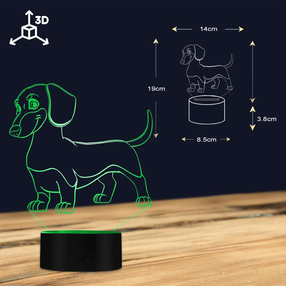 Special Offer Salchicha perro salchicha chico habitación luz de noche lámpara de mesa Wiener perro mascota cachorro brillante Lámpara LED de ilusión óptica iluminación decorativa Discount 10% Today!