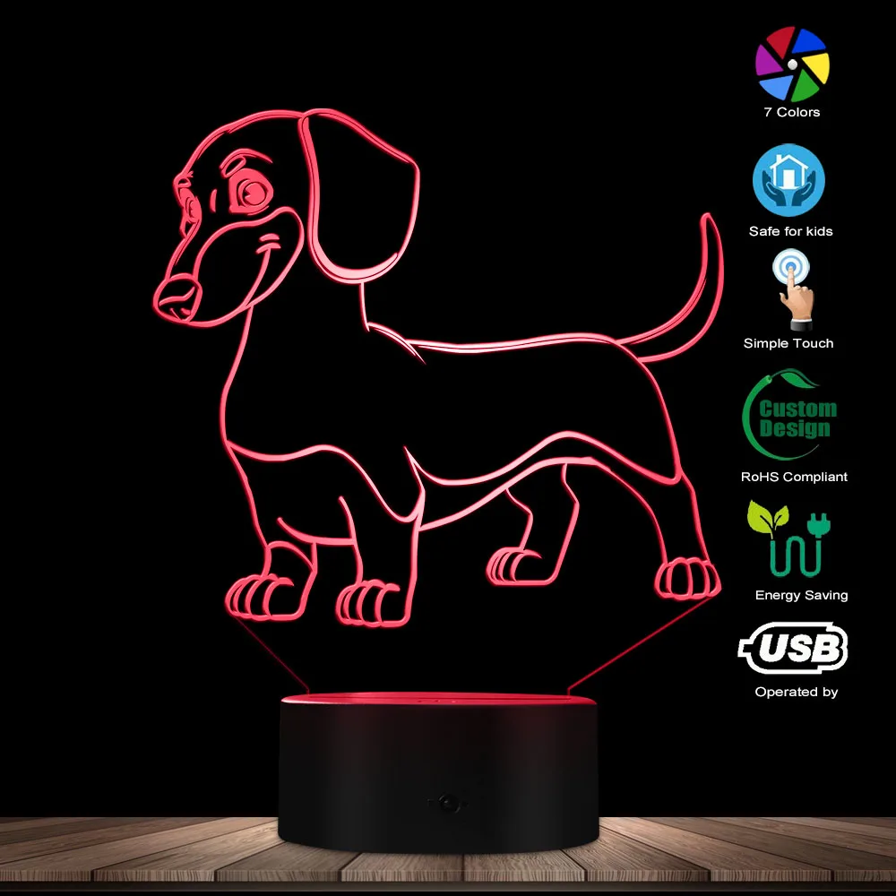 . (10% Off) Comprar Salchicha perro salchicha chico habitación luz de noche lámpara de mesa Wiener perro mascota cachorro brillante Lámpara LED de ilusión óptica iluminación decorativa Online Baratos.
