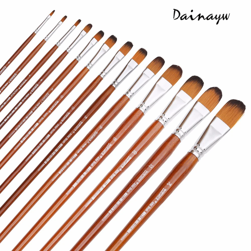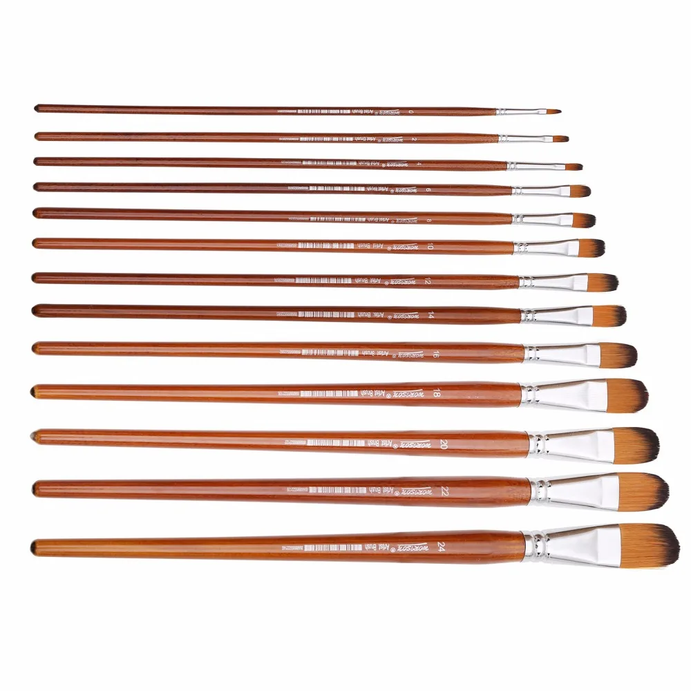 Special Offer 13 Uds Filbert cepillo set cabello de nylon mango largo para acuarela acrílico Artista de la pintura al óleo herramienta de dibujo de arte en la escuela suministros Discount 31% Today!