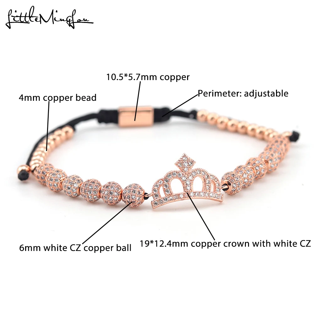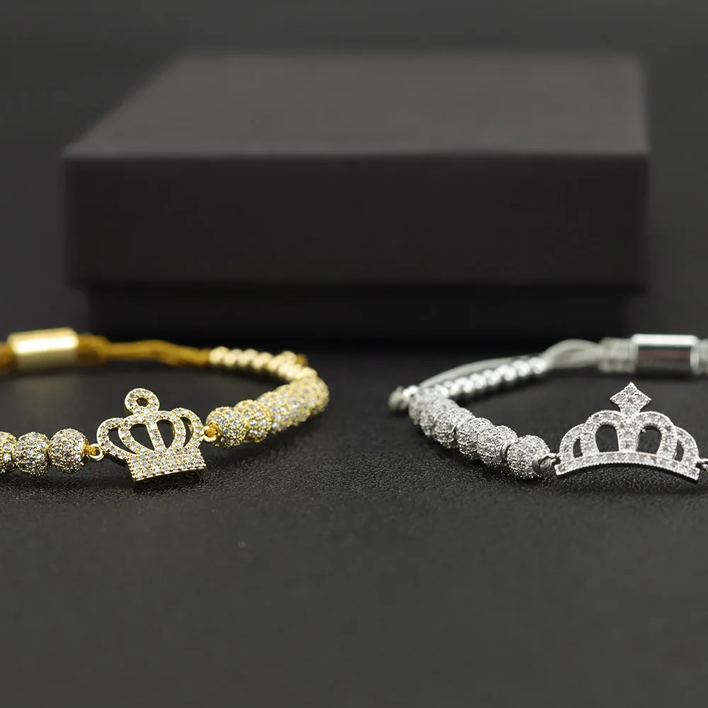 Product Name: Pulsera de lujo de la corona de la Reina de la CZ cuentas de cobre pulseras de las mujeres de macramé hechas a mano brazaletes para accesorios de la joyería de las mujeres