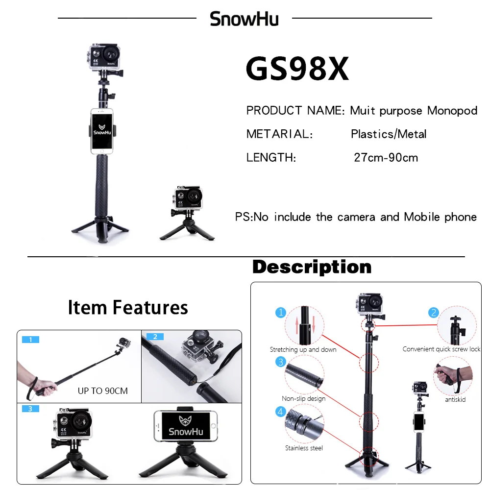 Product Name: SnowHu para Gopro accesorios para ir pro hero 8 7 6 5 4 kit 3 selfie palo para Eken h8r xiaomi para yi caso de EVA GS98